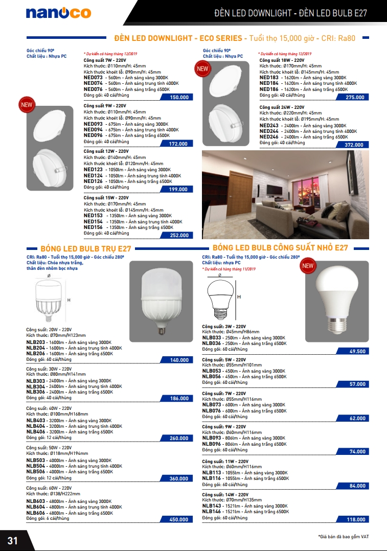 | 25 | Đèn led âm trần Nanoco 9w NSD0961 | 198,000 | 82,000 |