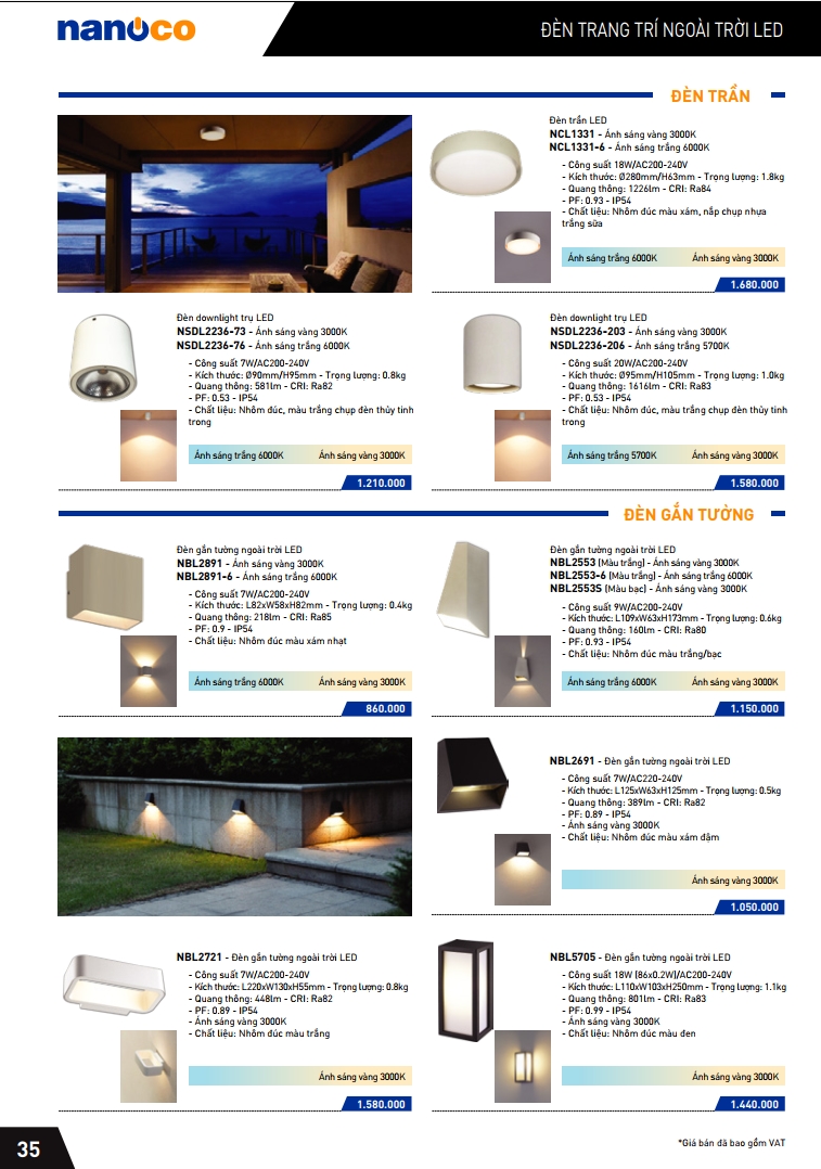 Bảng giá đèn trang trí ngoài trời Nanoco