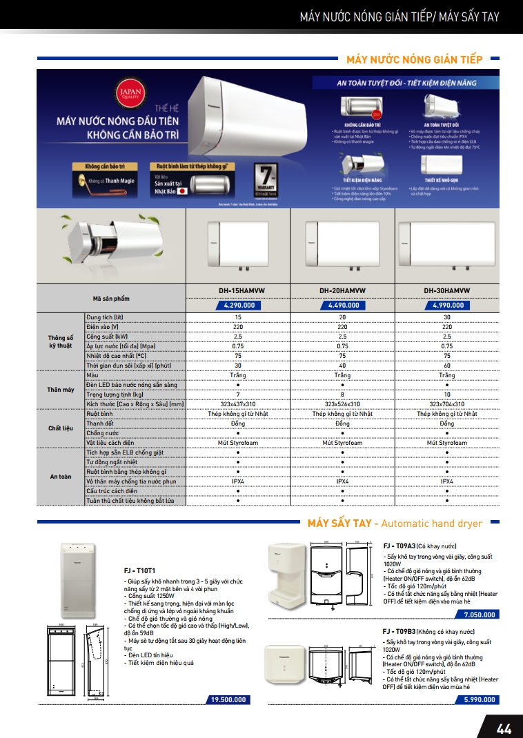 Bảng giá máy nước nóng gián tiếp, máy sấy tay
