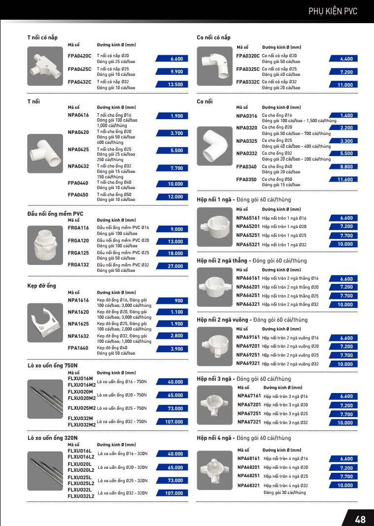 Bảng giá ống luồn dây điện và phụ kiện Nanoco