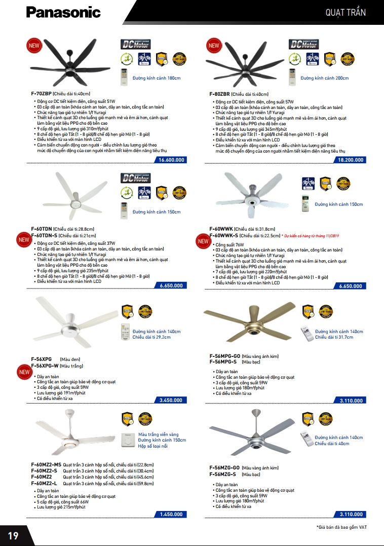 | 23 | Quạt trần 3 cánh F-60MZ2-MS | 1,450,000 | 950,000 |