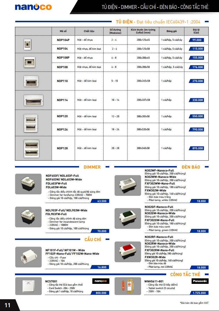 Bảng giá dimer cầu chì, đèn báo, công tắc thẻ