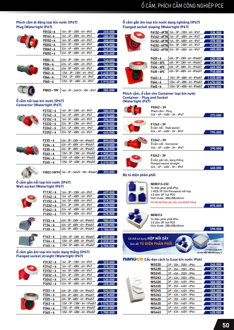 Bảng giá ổ cắm. phích cắm công nghiệp PCE sản xuất tại Austria