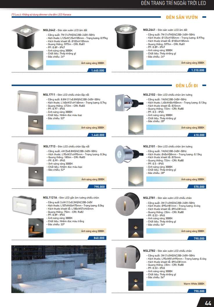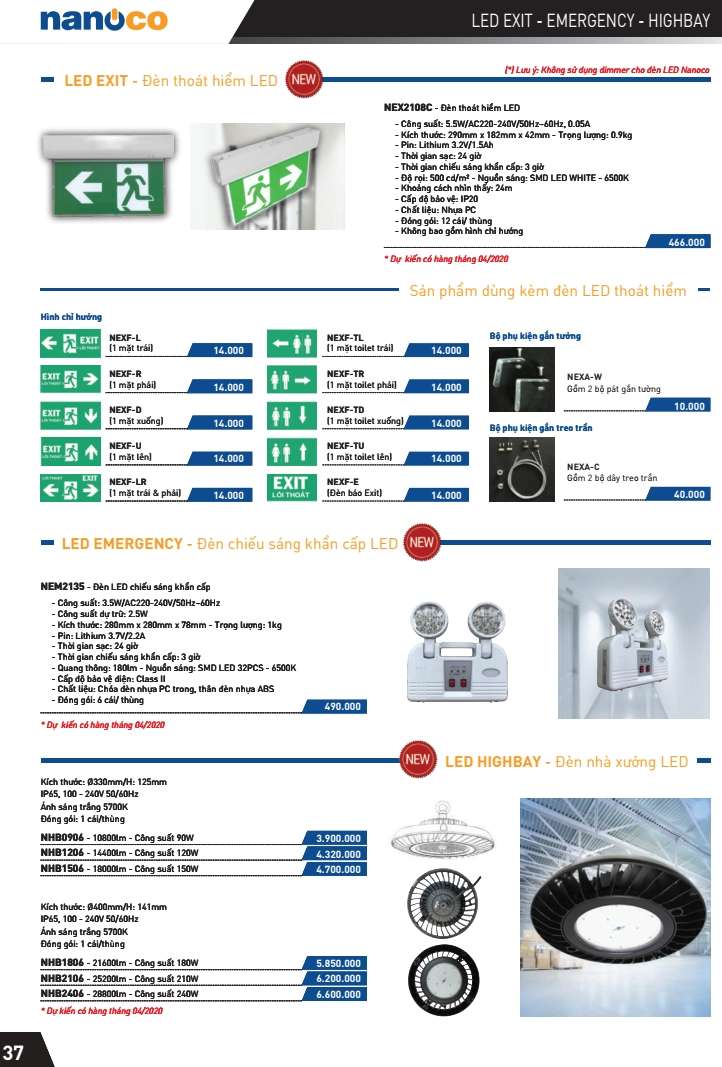 Bảng giá thiết bị điện đèn led Nanoco mới nhất năm 2020