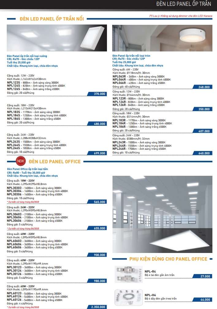 Bảng giá đèn nổi trần và đèn panel văn phòng Nanoco