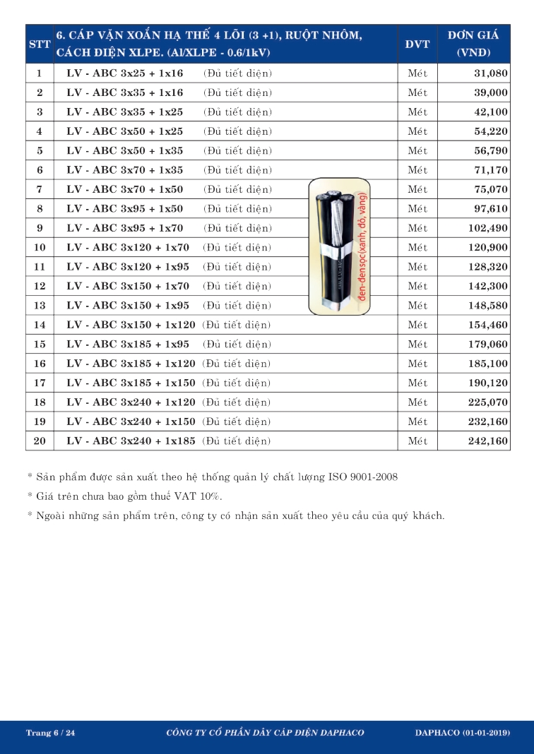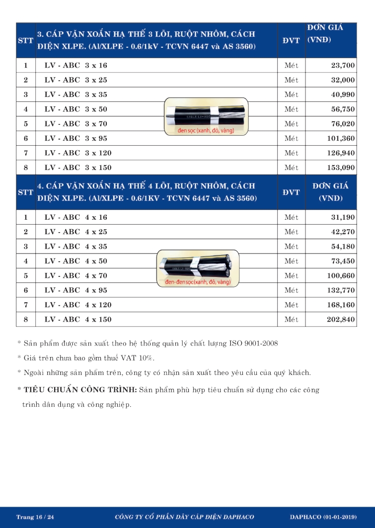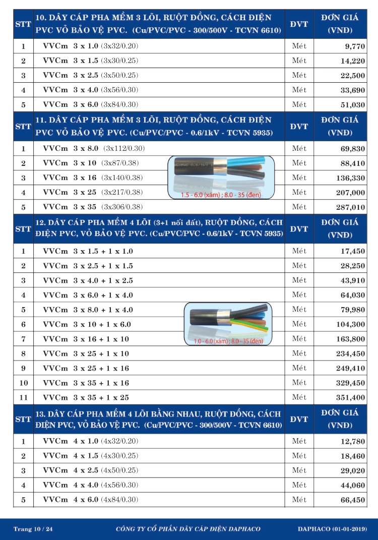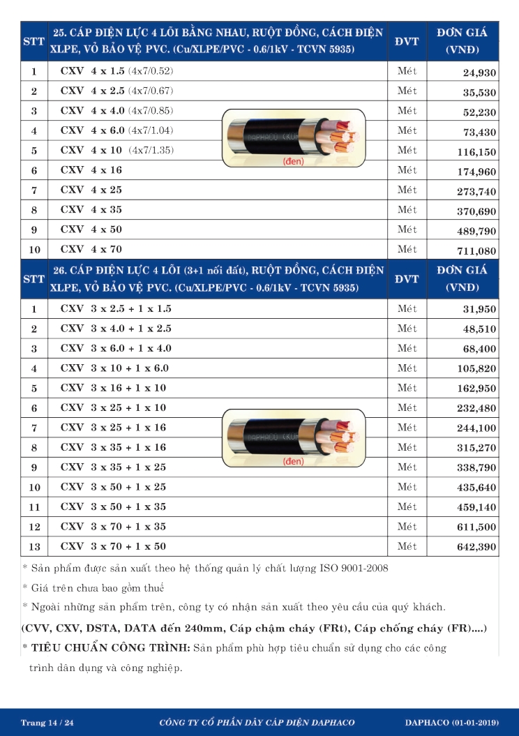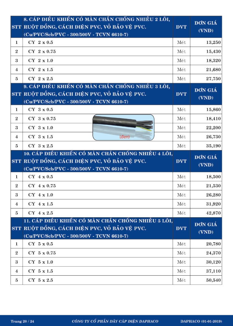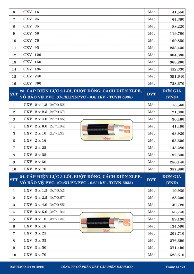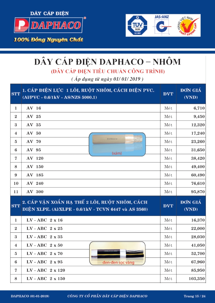Link download bảng giá dây điện Daphaco 2019 mới nhất