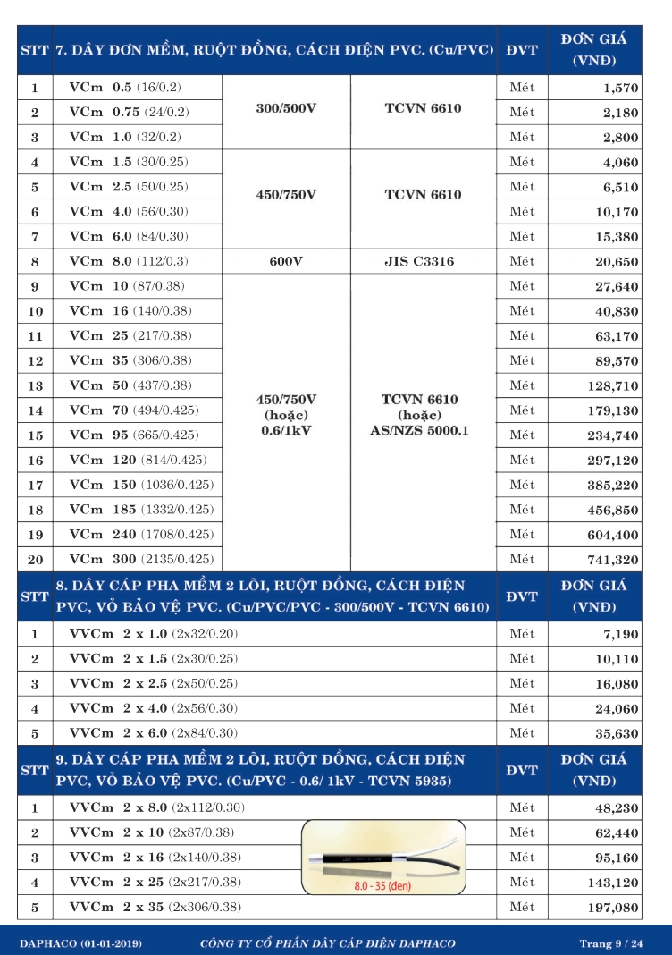[Full] Bảng giá dây điện Daphaco 2019 mới nhất