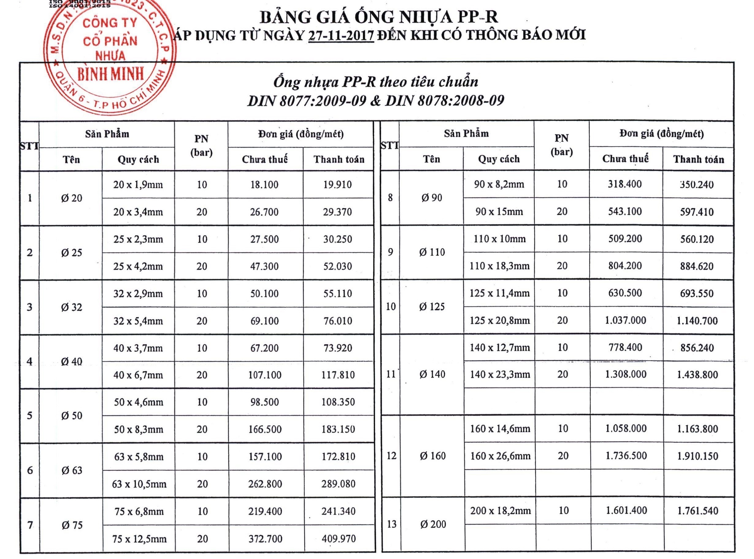 Ống ppr bình minh chất lượng, giá cả hợp lý, bảo hành 5 năm