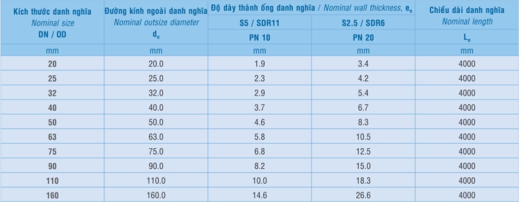 Ống ppr Bình Minh có tính chất vật lý sau: