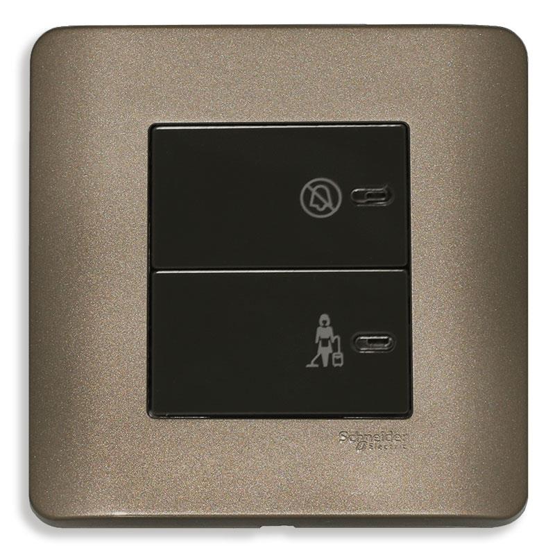 Bộ công tắc Zencelo “Không làm phiền”, “Xin dọn phòng” màu đồng Schneider E8432DMS_SZ_G19