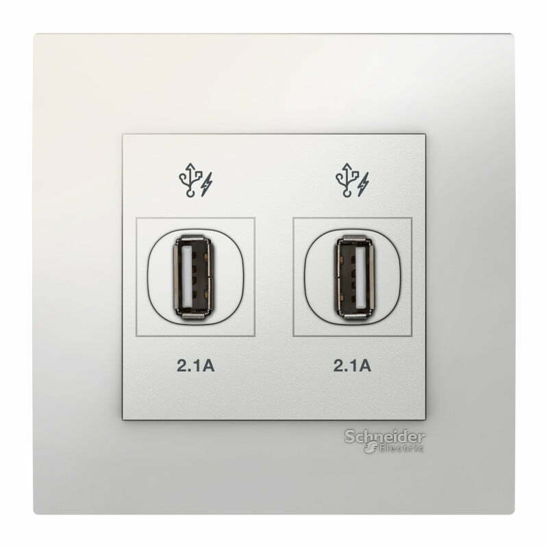 Bộ ổ cắm sạc USB Vivace đôi 2.1A màu trắng Schneider KB32USB_WE_G19