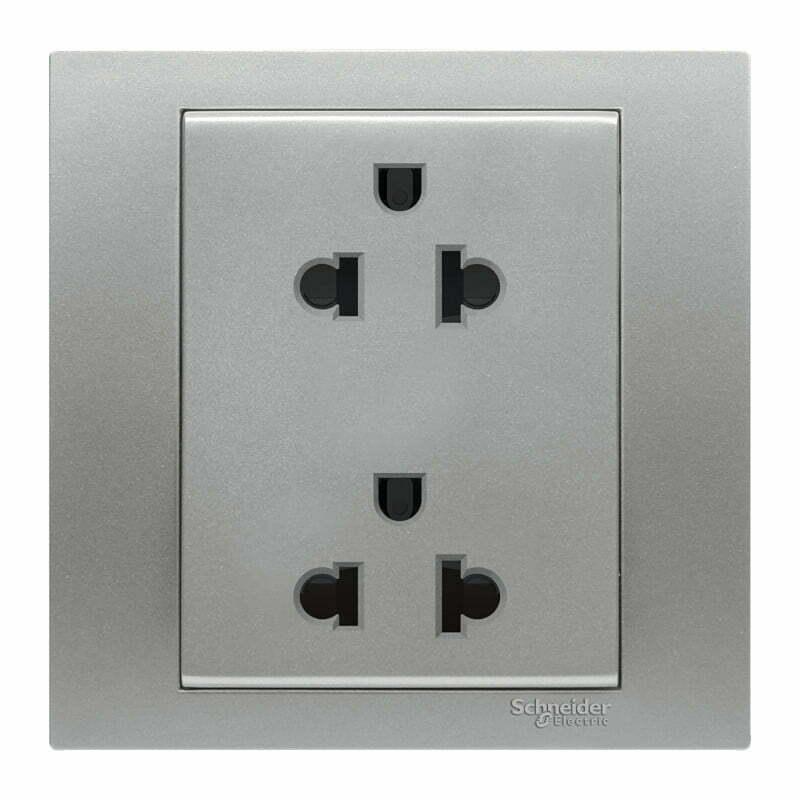 Bộ ổ cắm Vivace đôi 3 chấu 16A màu xám bạc Schneider KB426UES2_AS_G19