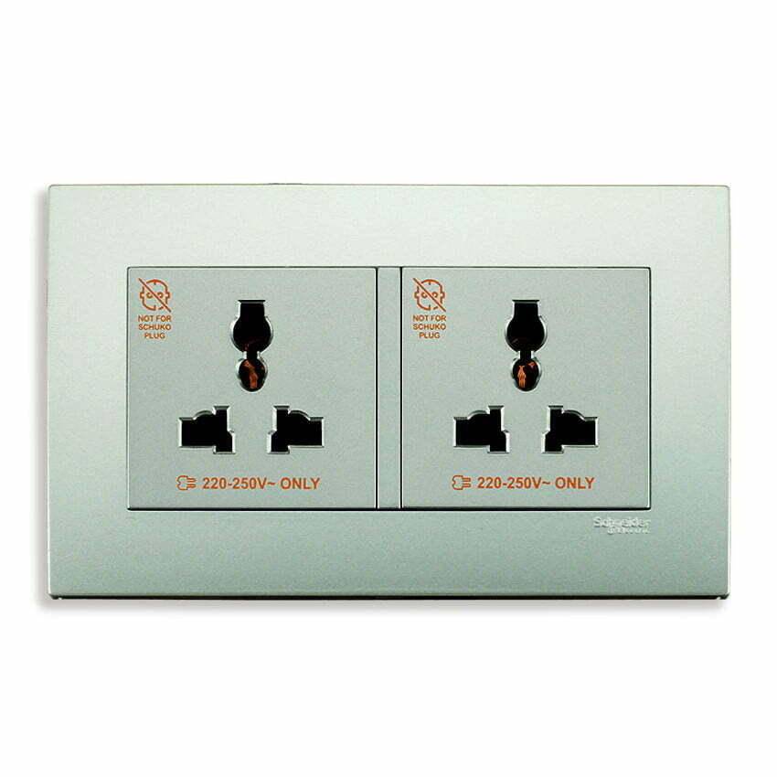 Bộ ổ cắm Vivace đôi đa năng 13A màu xám bạc