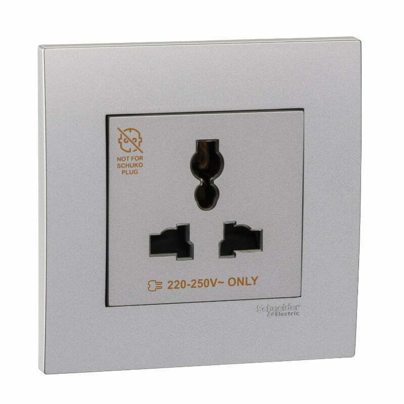 Bộ ổ cắm Vivace đơn đa năng 13A màu xám bạc Schneider