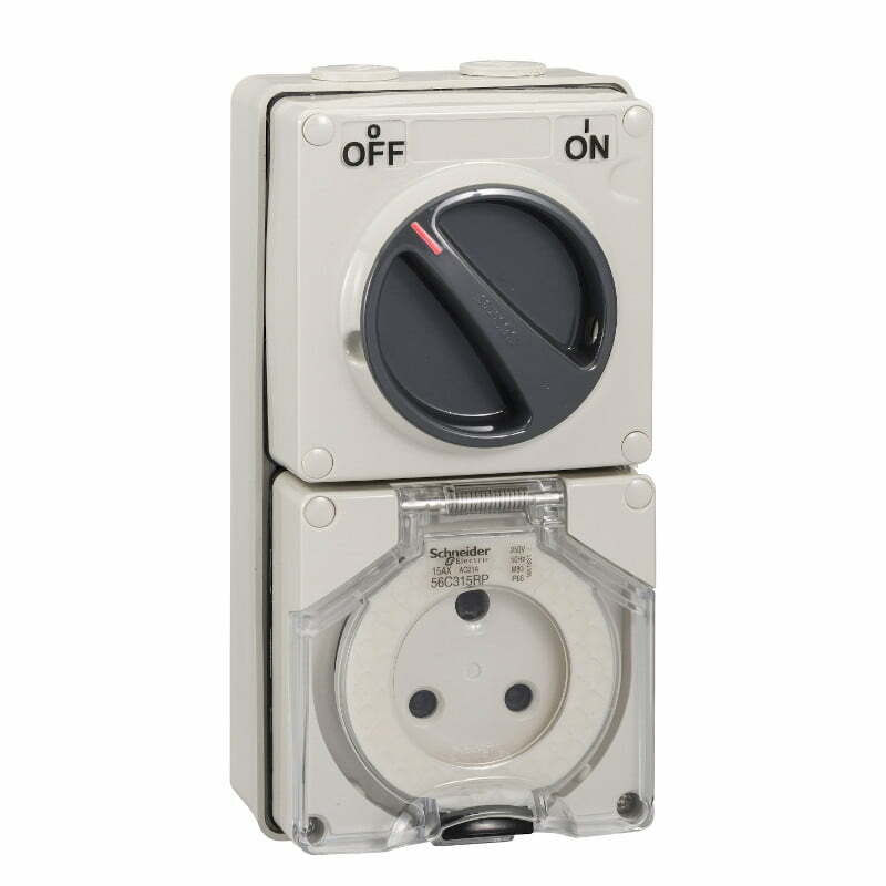 Ổ cắm có công tắc kín nước 3P 15A 250V IP66 Schneider S56C315RPGY